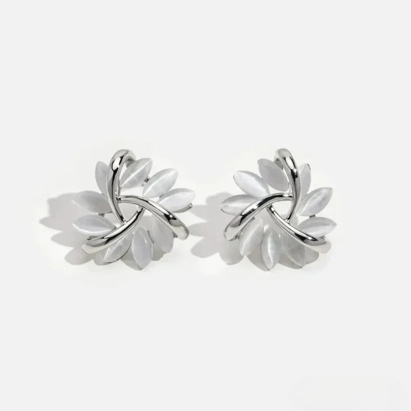 Nowoczesny blask: Opalowy płatek nadaje kolczykom wyjątkowego uroku i blasku.